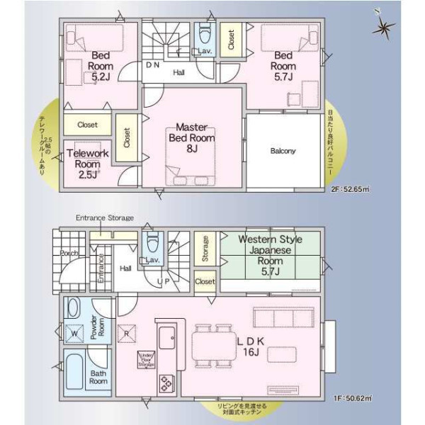| 設備 | 都市ガス、システムキッチン、カウンターキッチン、浄水器、トイレ2箇所、浴室乾燥機、複層ガラス、ルーフバルコニー、庭、床下収納、駐車2台可、モニタ付インターホン、火災警報器等設置済 | ||
