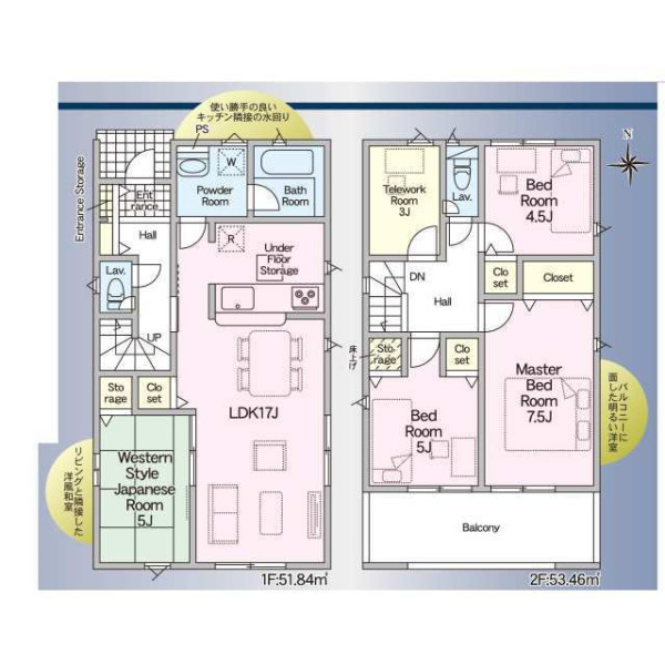 | 設備 | システムキッチン、カウンターキッチン、浄水器、IHクッキングヒーター、トイレ2箇所、浴室乾燥機、複層ガラス、ルーフバルコニー、庭、オール電化、床下収納、駐車3台以上可、モニタ付インターホン、火災警報器等設置済 | ||