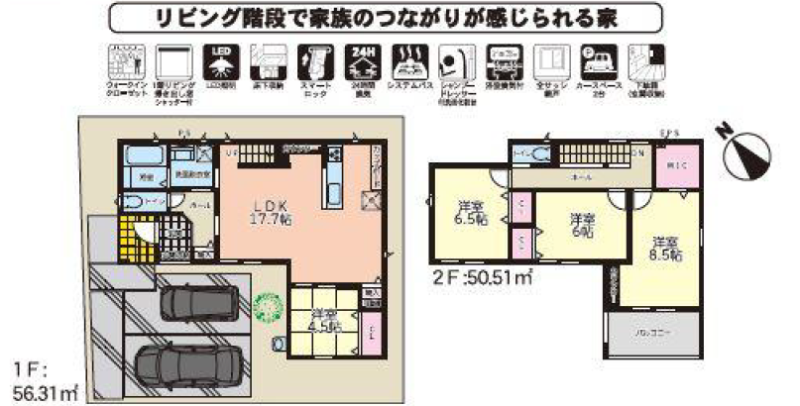 | 特徴 | 24時間換気システム、長期優良住宅 | ||