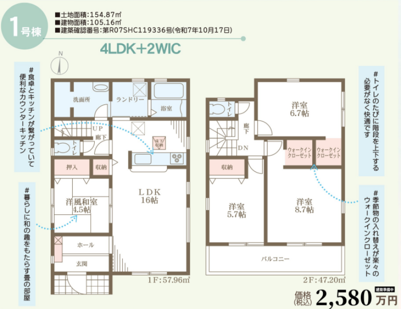| 価格 | 2,580万円 | 種目 | 新築一戸建て |
