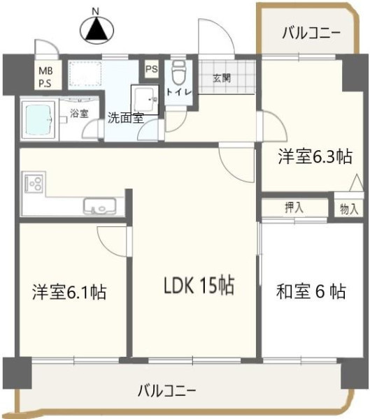 | 間取り | 3LDK | 間取り向き | (角部屋) |