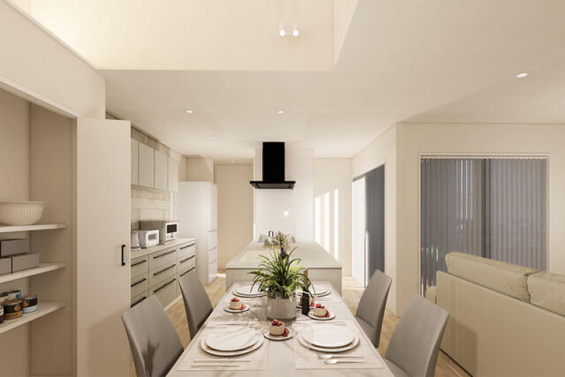 | 設備 | システムキッチン、カウンターキッチン、食器洗浄乾燥機、IHクッキングヒーター、アイランドキッチン、追焚機能、トイレ2箇所、温水洗浄便座、シャンプードレッサー、複層ガラス、オール電化、ウォークインクローゼット、駐車3台以上可、モニタ付インターホン | ||