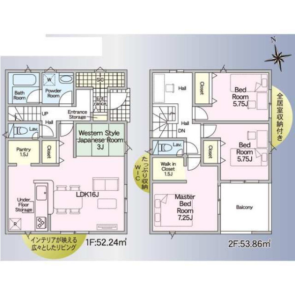 | 設備 | ガスその他、電気、上水道、下水道、システムキッチン、カウンターキッチン、浄水器、IHクッキングヒーター、給湯、トイレ2箇所、温水洗浄便座、シャンプードレッサー、浴室乾燥機、フローリング、複層ガラス、ルーフバルコニー、オール電化、収納スペース、ウォークインクローゼット、床下収納、シューズインクローゼット、ディンプルキー、モニタ付インターホン、火災警報器等設置済、建設住宅性能評価取得(予定含む) | ||