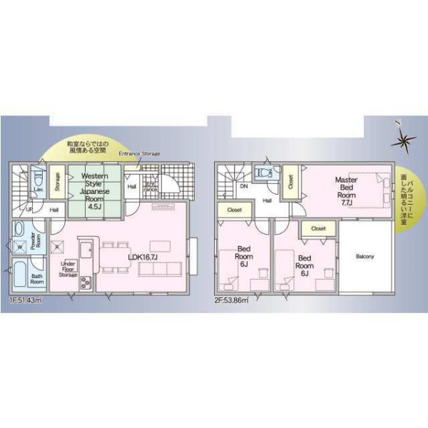 | 設備 | ガスその他、電気、上水道、下水道、システムキッチン、カウンターキッチン、浄水器、IHクッキングヒーター、給湯、トイレ2箇所、温水洗浄便座、シャンプードレッサー、浴室乾燥機、フローリング、複層ガラス、ルーフバルコニー、オール電化、収納スペース、床下収納、駐車2台可、ディンプルキー、モニタ付インターホン、火災警報器等設置済、建設住宅性能評価取得(予定含む) | ||